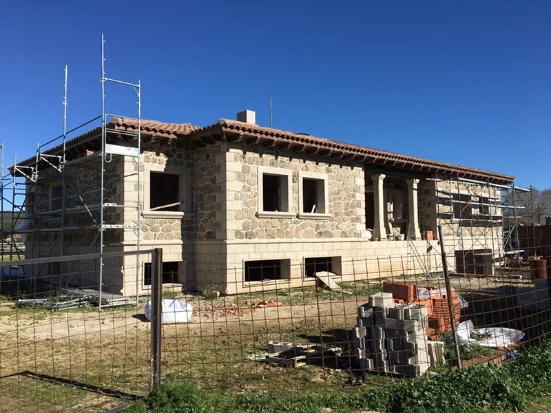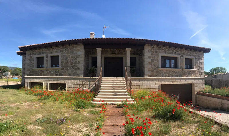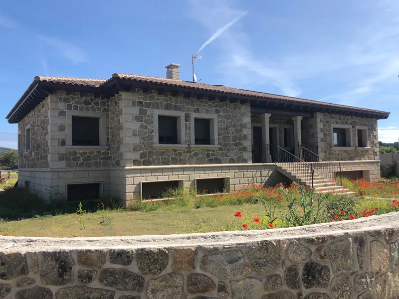 Proyecto de vivienda unifamiliar con vistas extraordinarias y una ganadería en la parte posterior de la vivienda, el interior cuenta con acabados de lujos, así como el exterior con piedra de cantera cercana, típica de la zona.